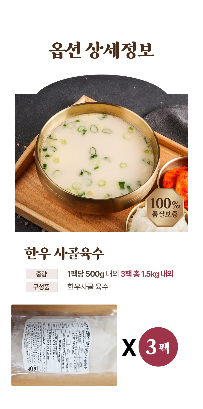 원팩 수제 만능 한우사골 육수 1팩당 500g x 3팩