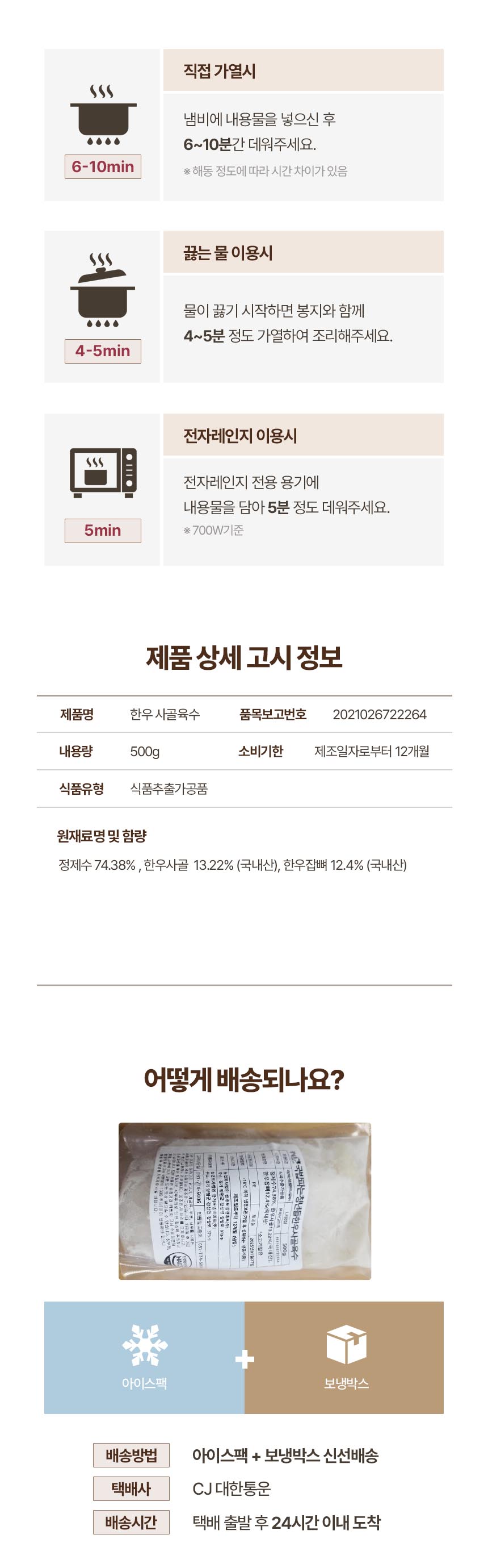 • 원팩 수제 만능 한우사골 육수 1팩당 500g x 3팩