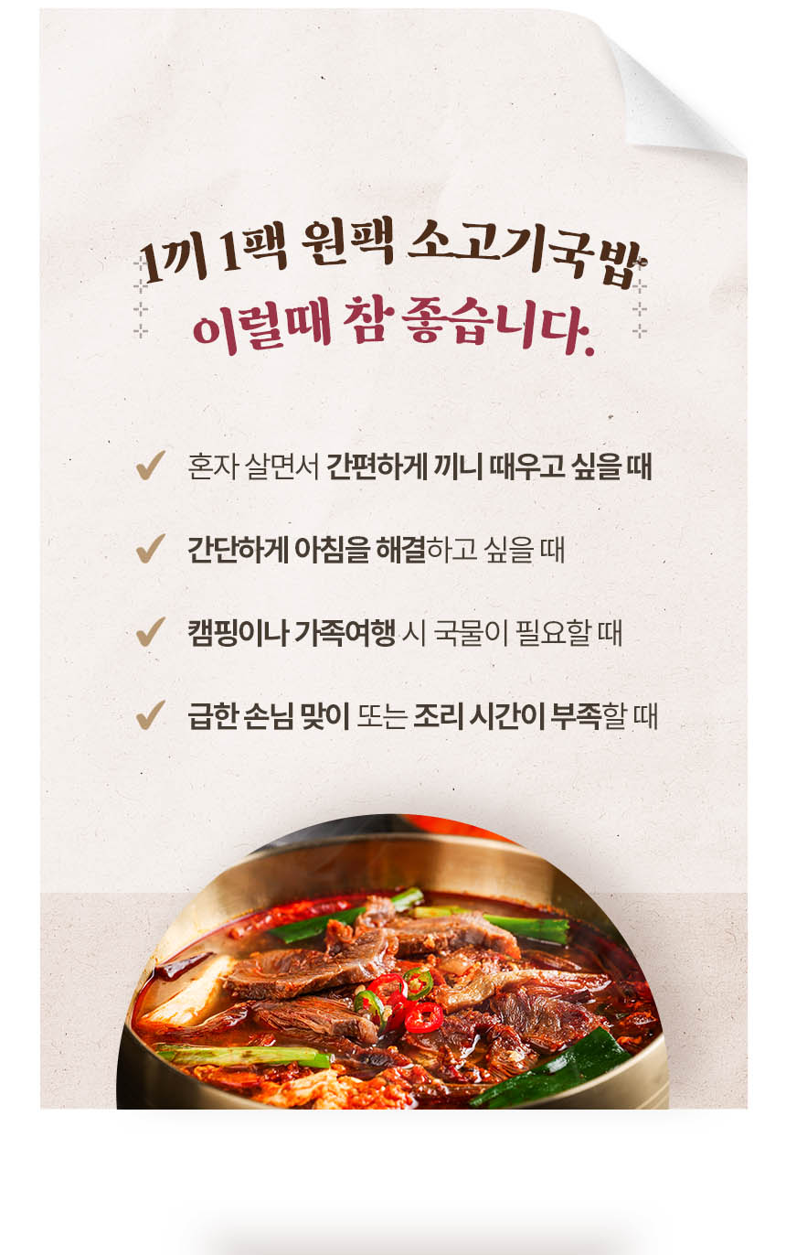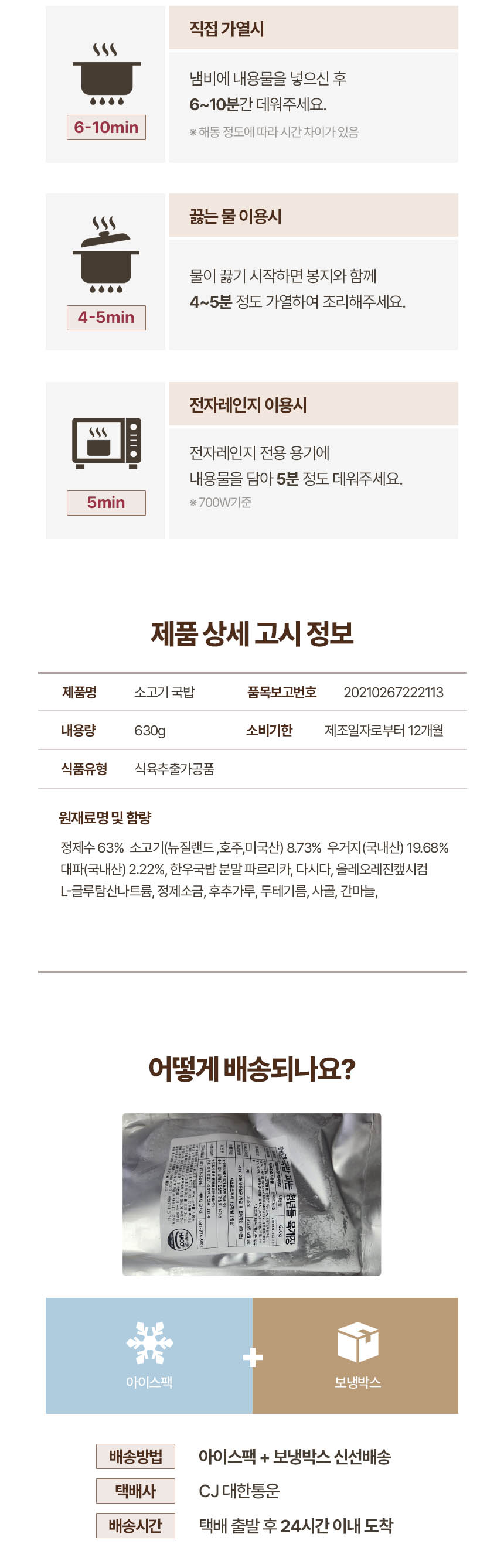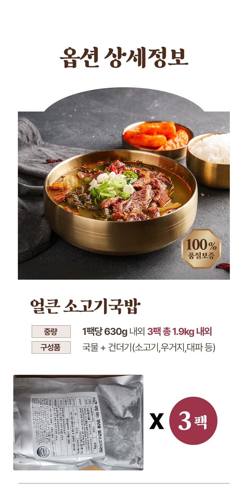 • 원팩 수제 푸짐한 건더기 얼큰소고기국밥 1팩당 630g 3팩