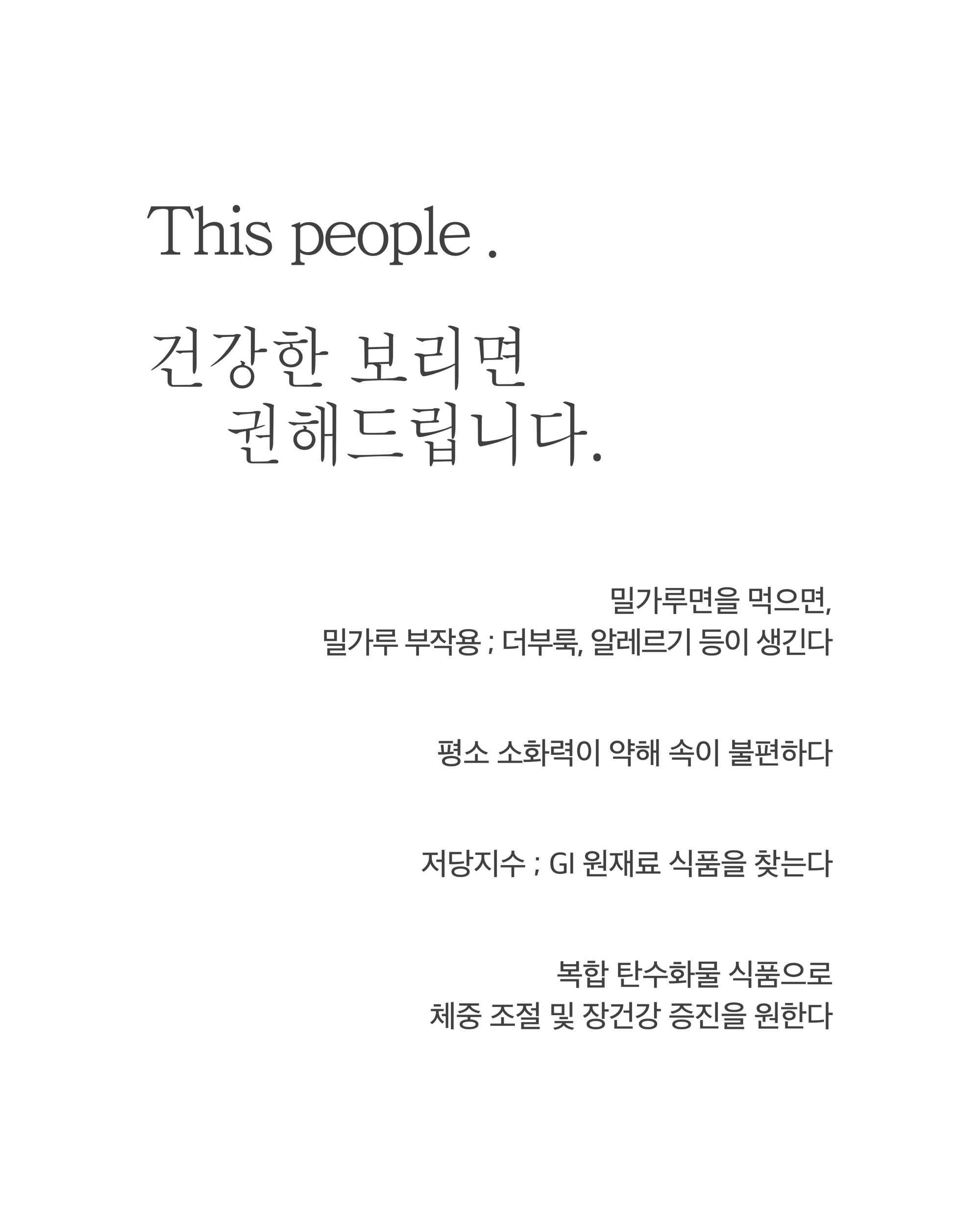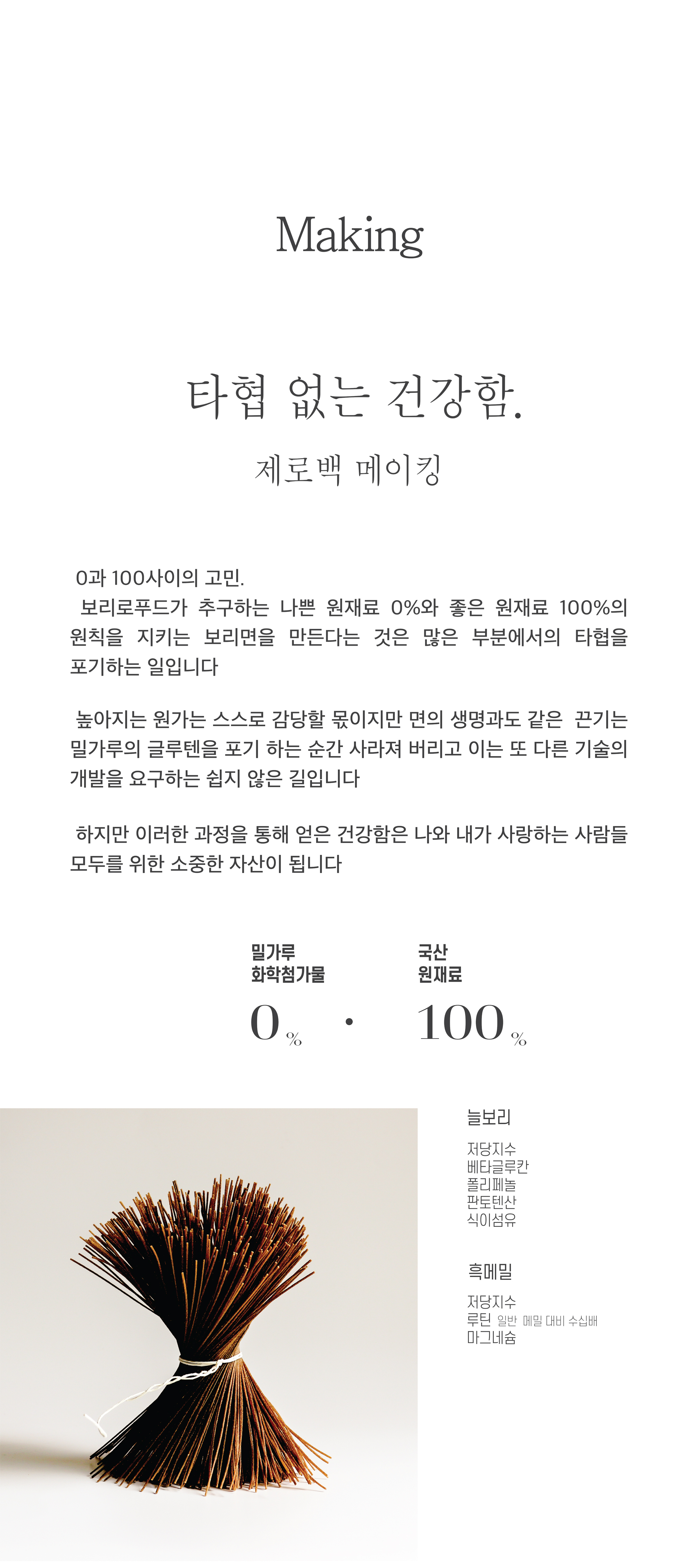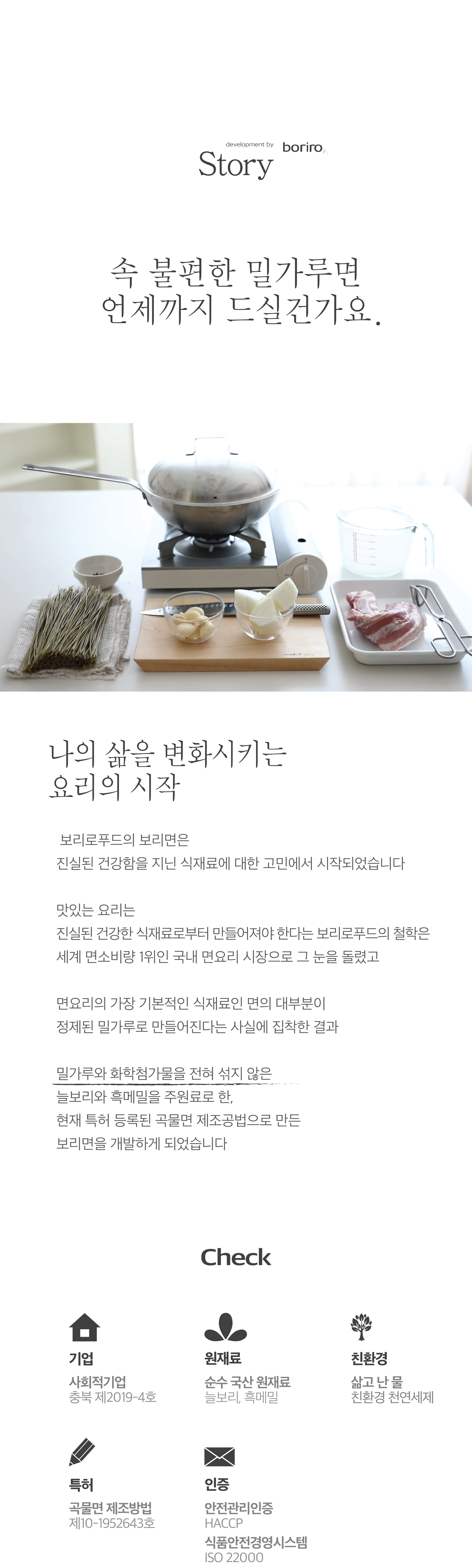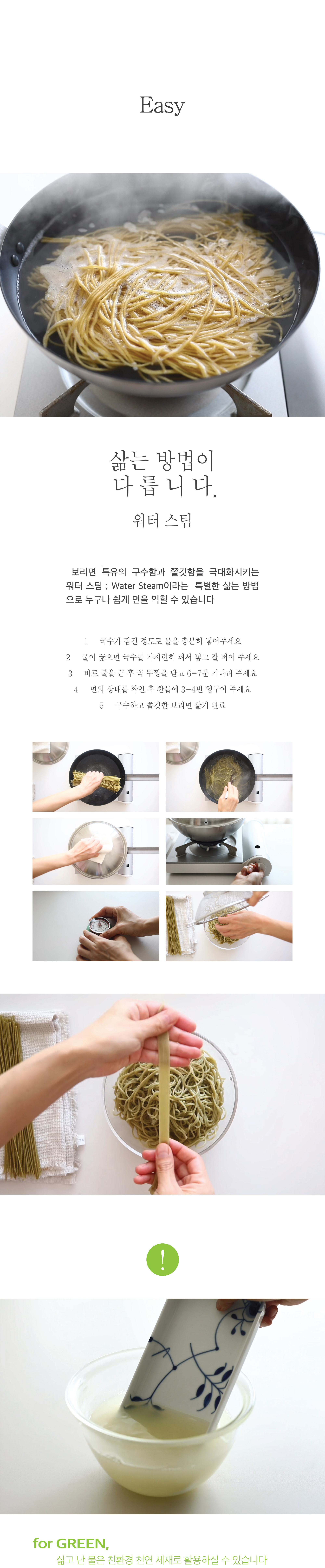밀가루와 화학첨가물을 전혀 섞지 않고 순수 국산 원료로 만든 건강한 보리국수