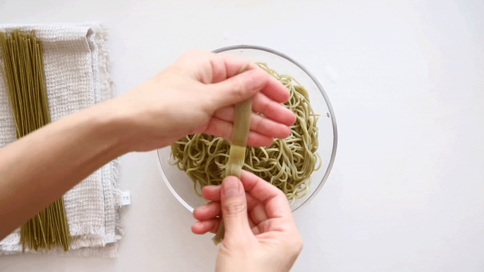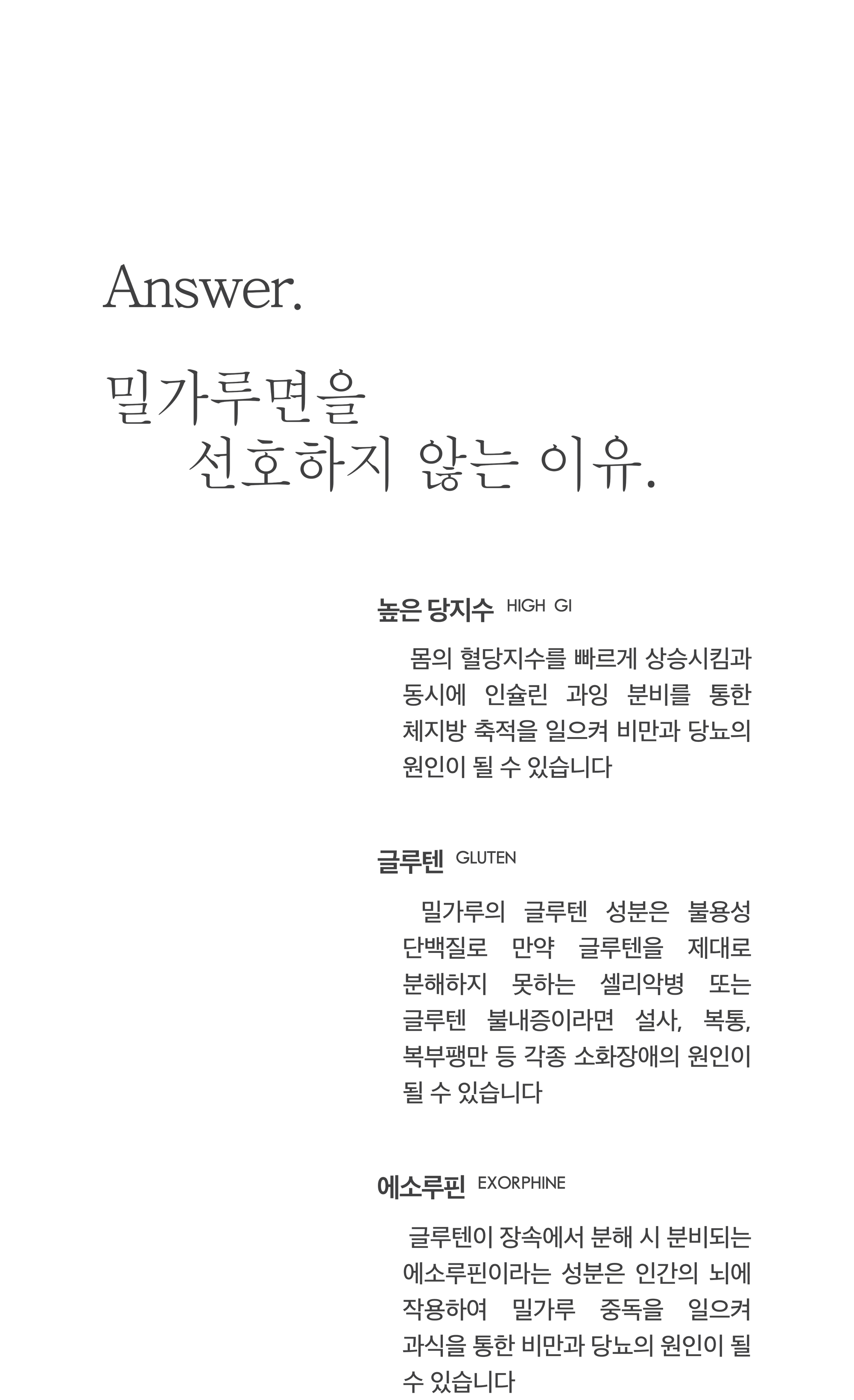 특허받은 기술로 밀가루 없이도 면발이 쫄깃쫄깃합니다