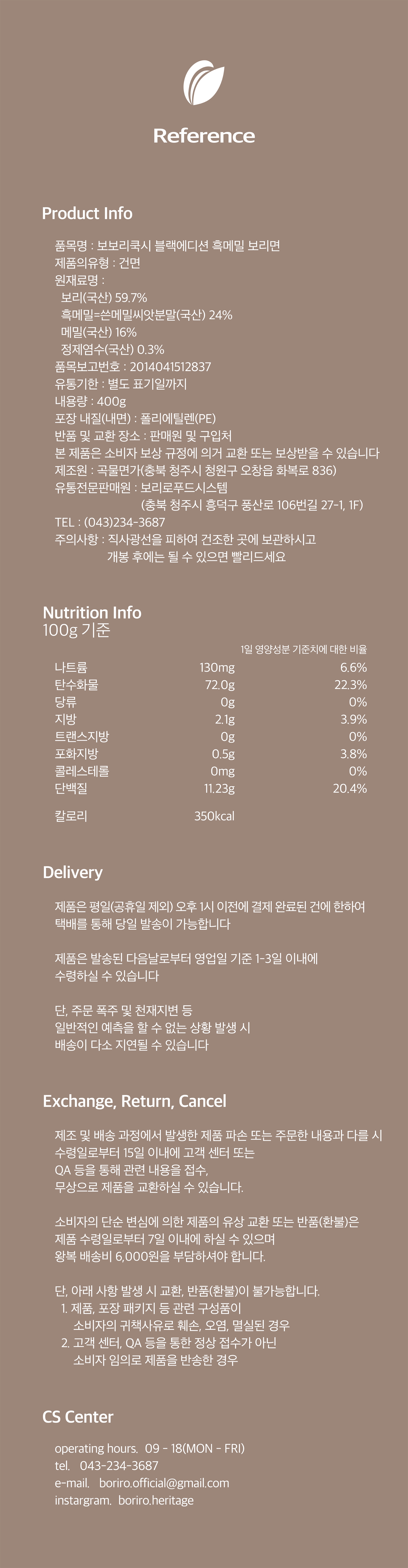 • 밀가루0% 보보리쿡시 흑메밀 보리국수 400g 메밀국수