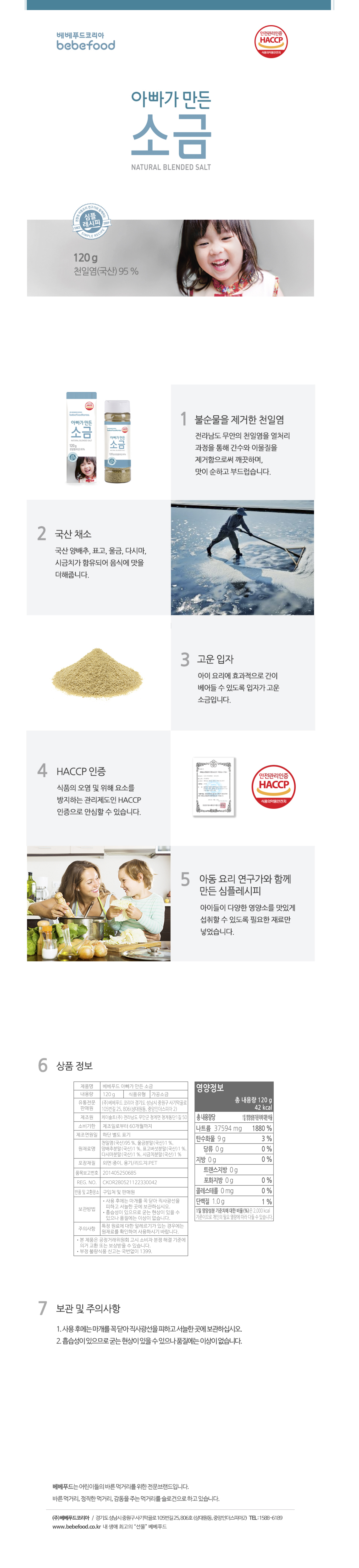 불순물을 제거한 국산 천일염에 국산 채소를 더해 더욱 맛있고 건강한 소금