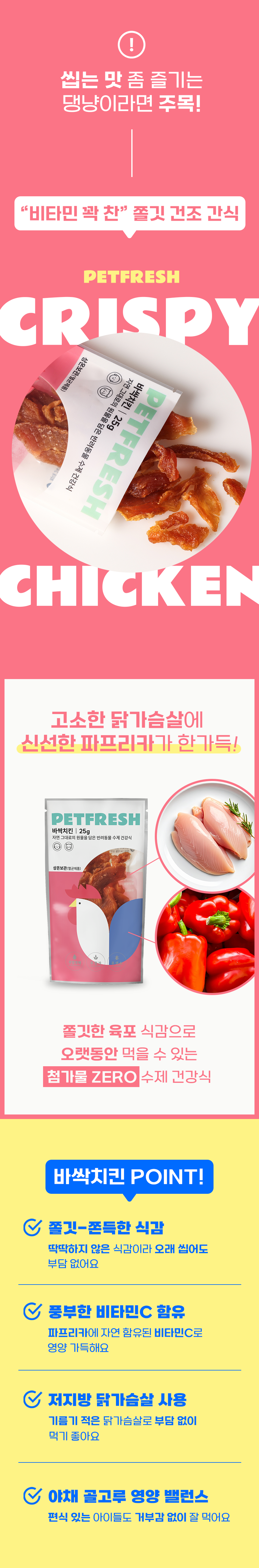 바싹치킨 통살트릿 강아지 고양이 치킨껌 무방부제 신선 고소 단백질 간식