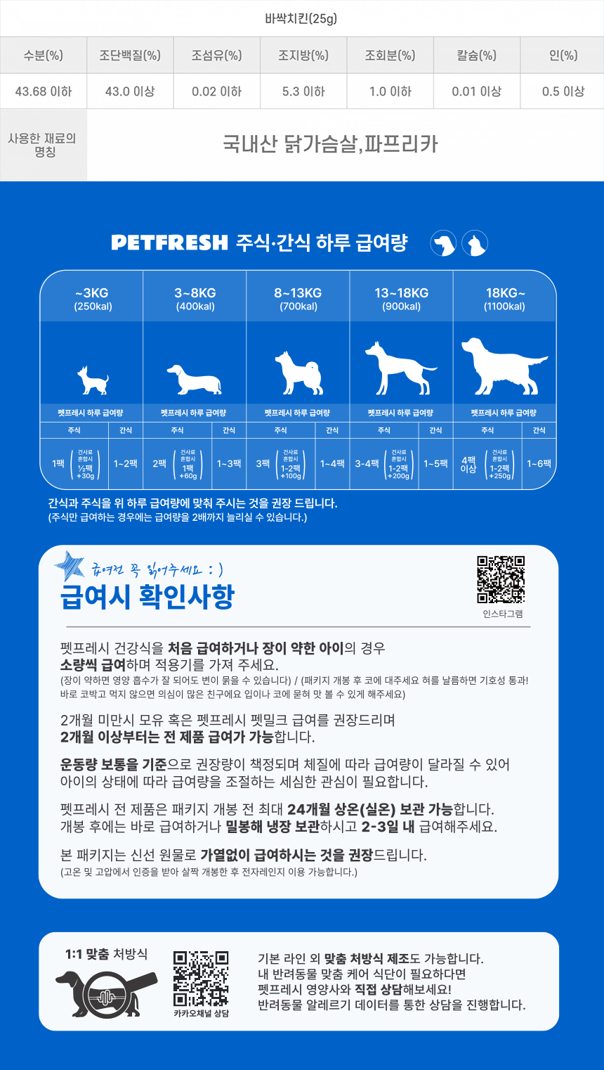 100% 신선 원물로 만든 휴먼 그레이드 건강식단 신선 향이 보관되는 기술! 사용된 원물의 높은 등급을 직접 느껴보세요! 영양사가 설계해 더 효과적인, 내 반려동물만의 맞춤 케어식 경매시장에서 산지 직송 신선원물 엄선해 자체 제조업소에서 생산 내 반려동물을 위한 갓 지은 수제 밥상 배달~! 오직 펫프레시에서만