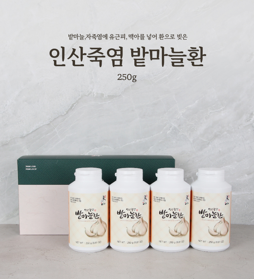 | 제품명 | 인산죽염 밭마늘환 250g 4개 선물세트 |