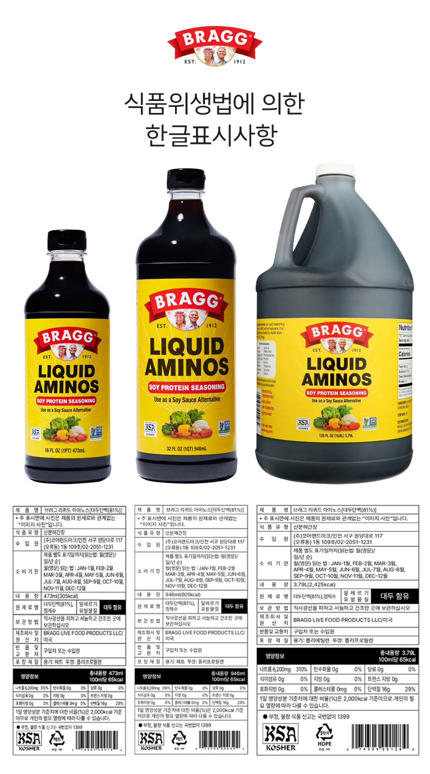 NON-GMO 브래그 저염간장 비건 글루텐 프리