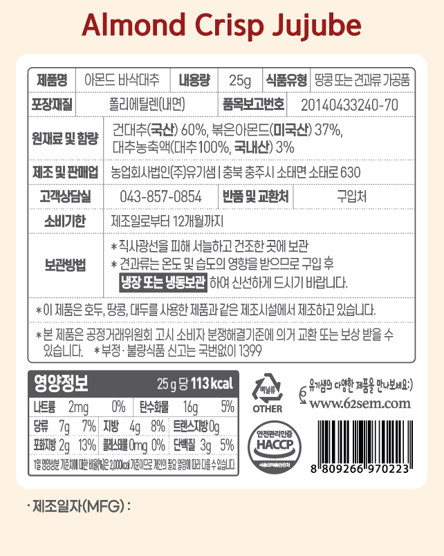 세계 10대 푸드의 하나인 아몬드와 바삭 달콤한 대추가 만나
