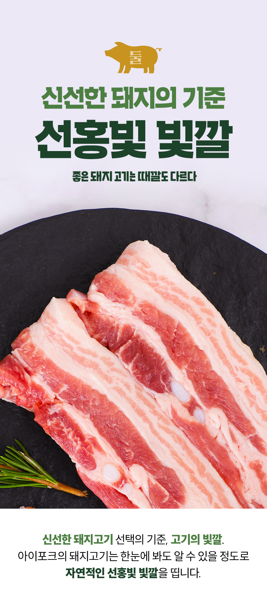 양질의 물을 먹여 키운 무항생제 돼지로 깨끗합니다.