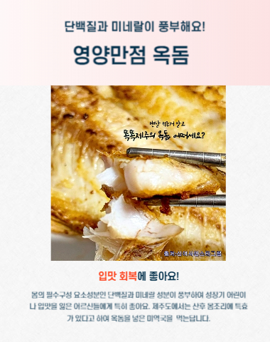 100% 제주산 옥돔, 뛰어난 감칠맛과 쫄깃한 맛을 느껴보세요