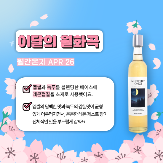 정제수, 찹쌀(국내산), 월화곡(자가누룩:국내산)