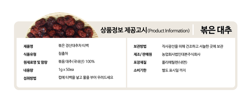 대추 원물의 영양을 그대로 담은 대추차 티백