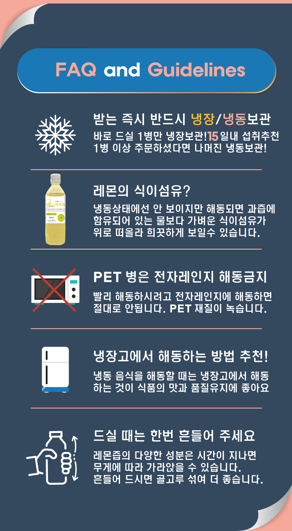 수령 시 냉장/냉동보관 냉장보관 15일 이내 섭취 장기간 보관 시 냉동보관 및 냉장해동