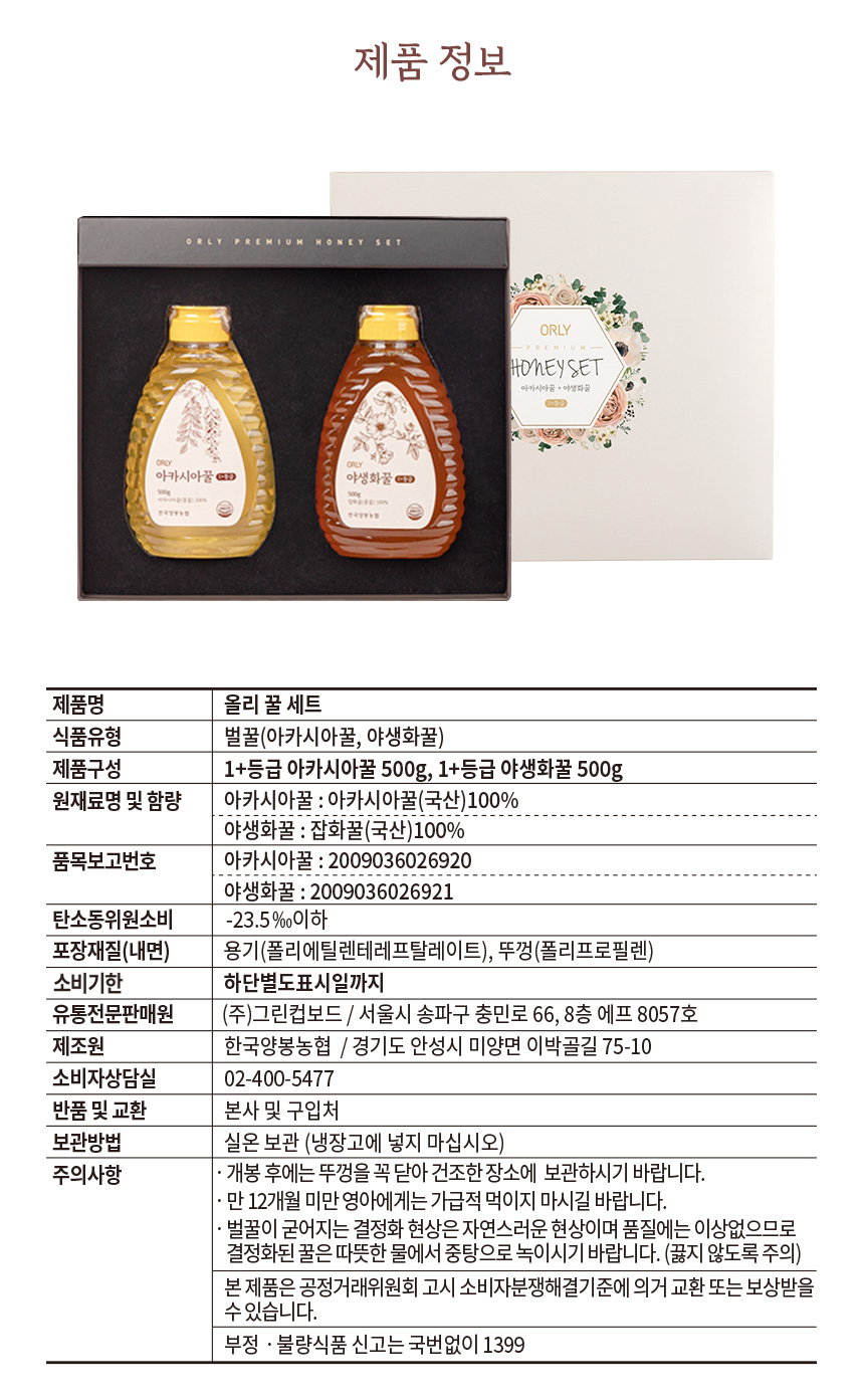 올리 1+등급 프리미엄 꿀 세트 (쇼핑백포함)
