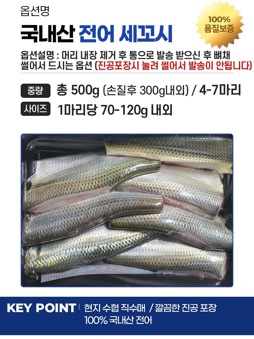 국내산 전어 구이용/세꼬시/횟감필렛 500g 4-7미 내외