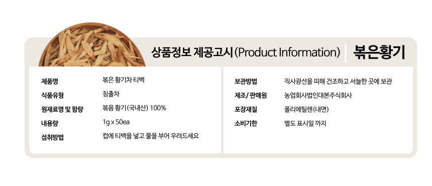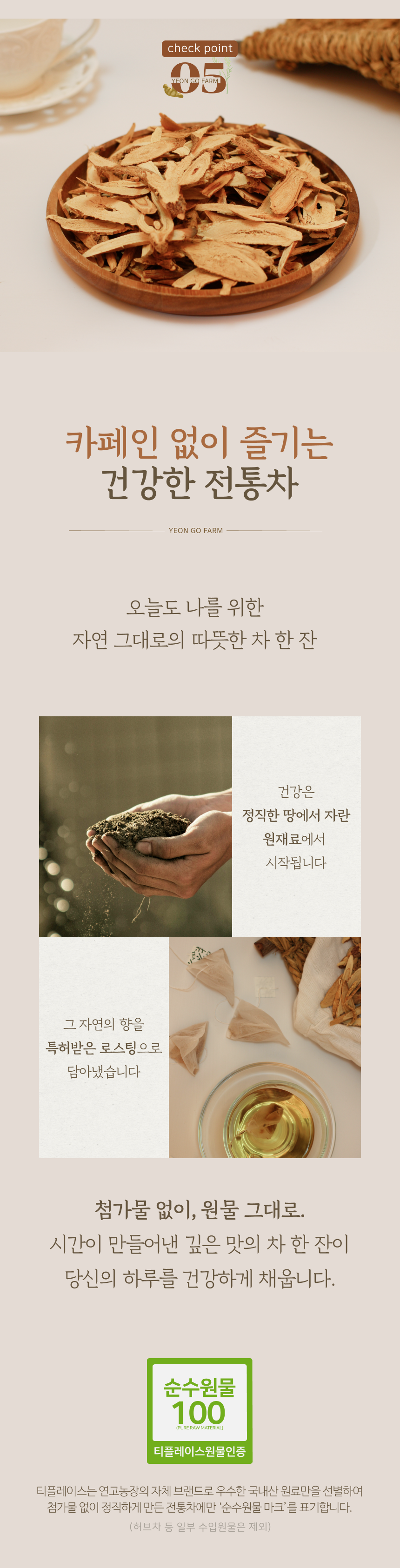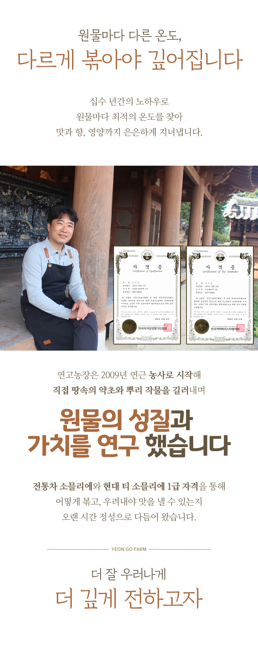 원물을 그대로 볶아 맛과 향, 영양까지 느껴지는 티백차