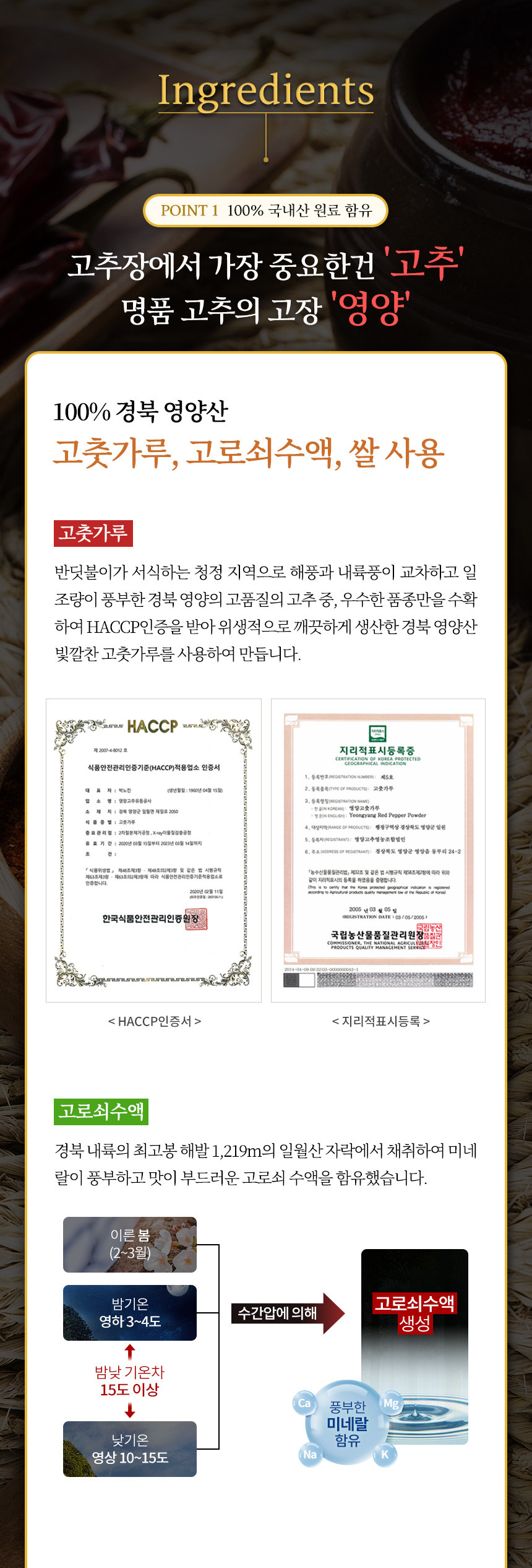 2. 100% 경북 영양산 명품 빛깔찬 고춧가루, 고로쇠수액, 쌀 사용