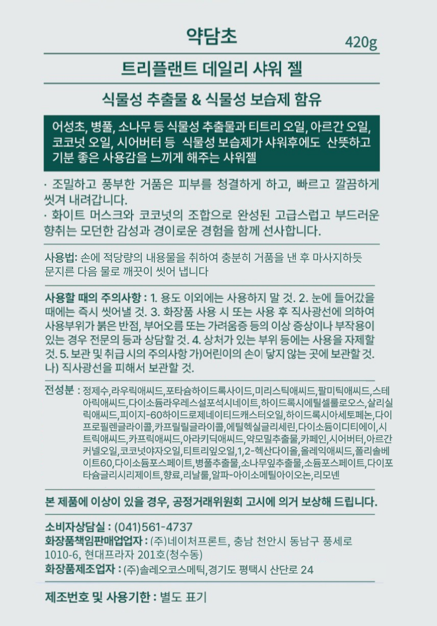 약담초 NEW 삼초 바디워시 샤워젤 420g
