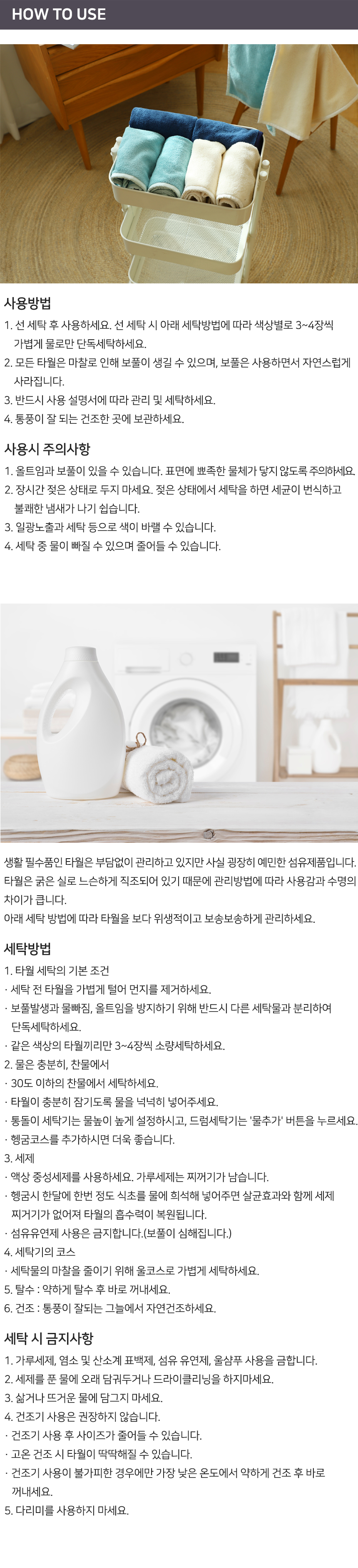 높은 650GSM으로, 흡수력이 좋고 오랫동안 볼륨감이 유지되는 부드러운 페이스 타월