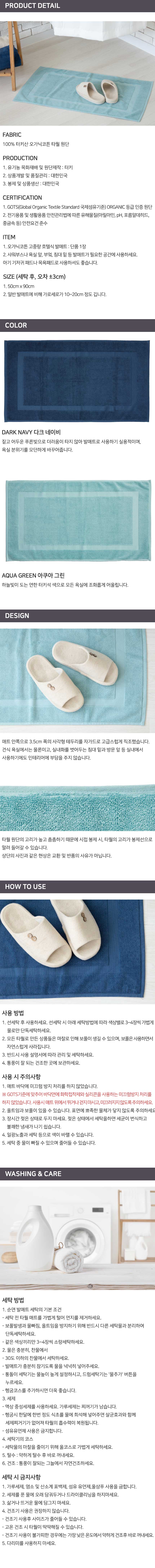• 오가닉코튼 고중량 호텔식 발매트 50x90 순면발매트 타월발매트 ORGANIC COTTON 유기농면