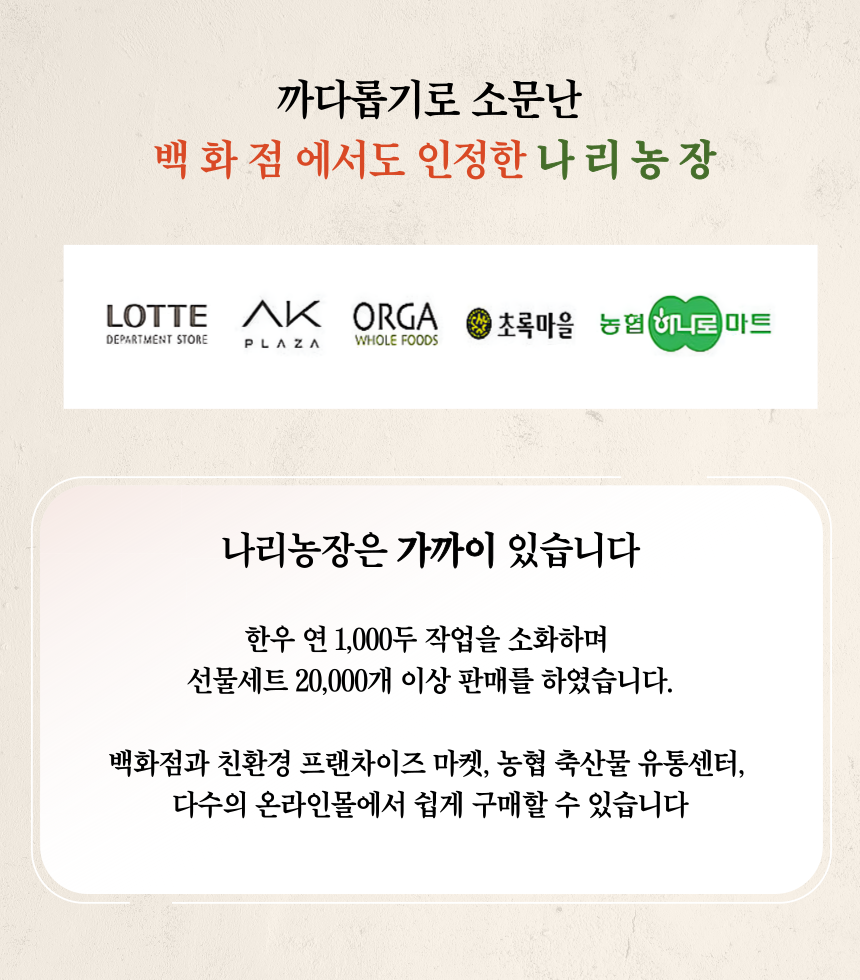 1. 믿을 수 있는 품질 : 공정하고 엄격한 기준을 갖춘 농협의 지육만을 제공받고 있습니다.