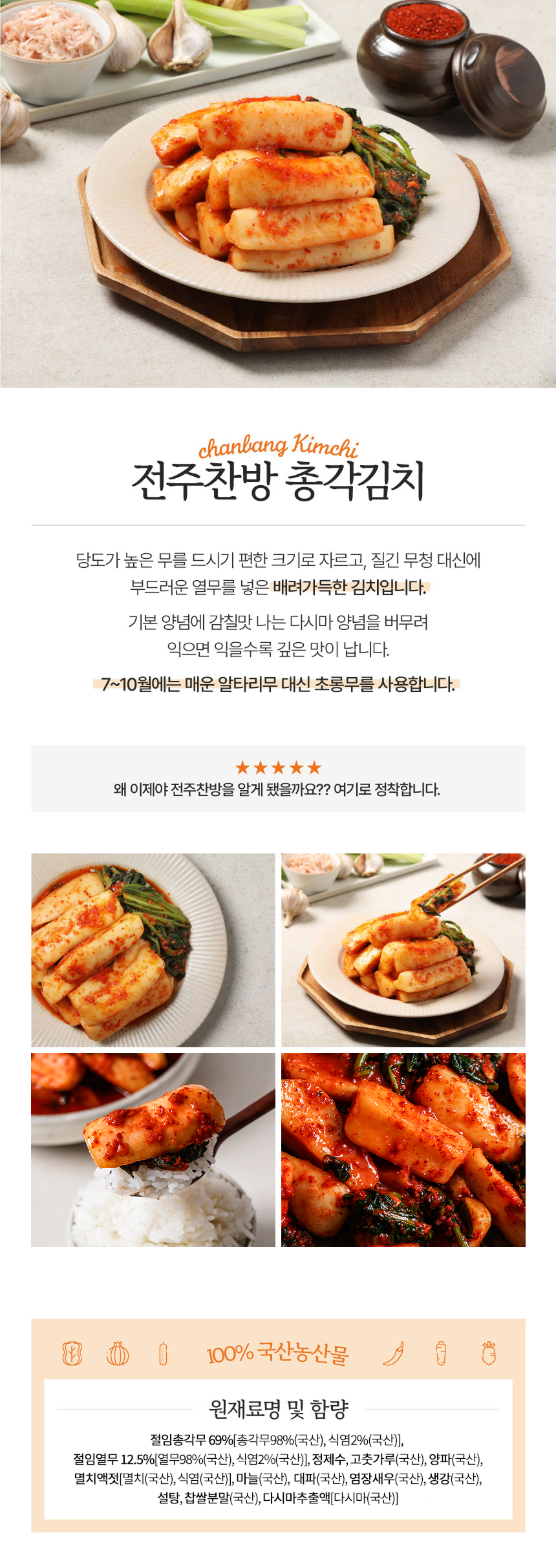 1. 신선하고 안전한 원재료를 사용하여 집에서 담근 김치처럼 자연스러운 맛 추구합니다.