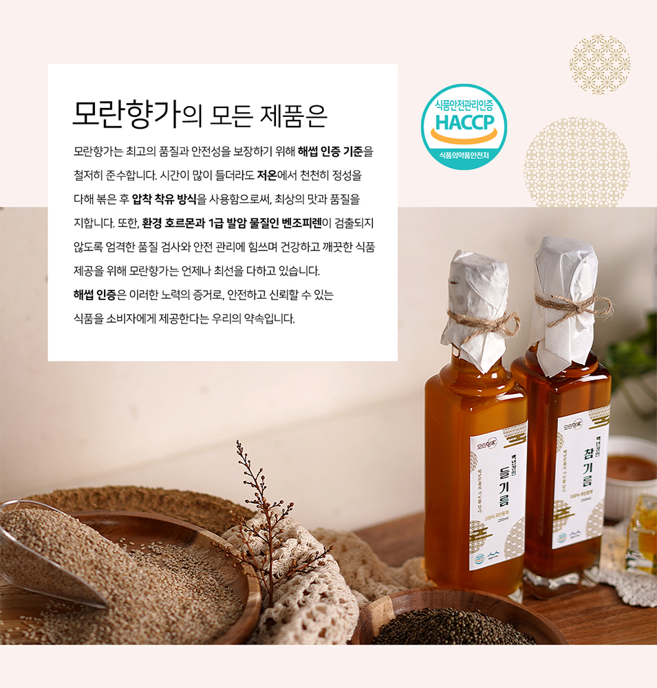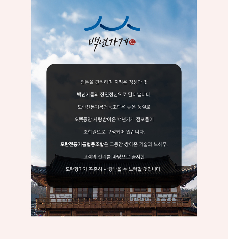백년가게 모란전통기름협동조합 모란향가 저온압착 주문당일착유