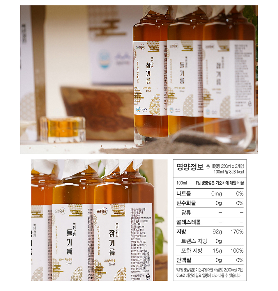 • 모란향가 저온압착 국내산 참기름 들기름 250ml  set