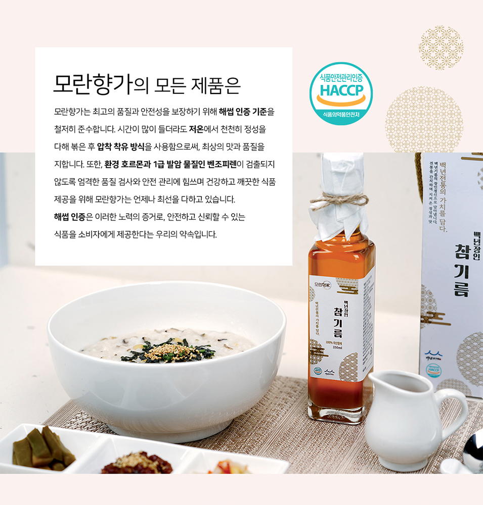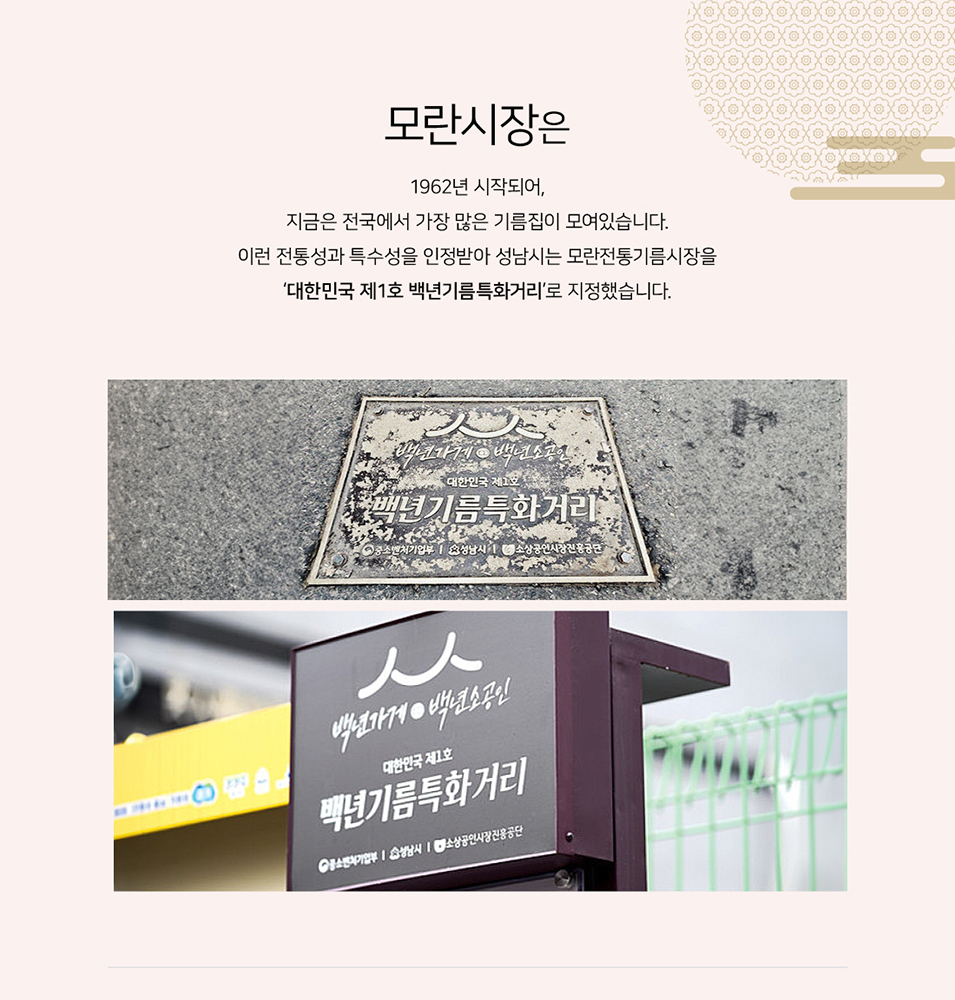 백년가게 모란전통기름협동조합 모란향가 국내산 통참깨100% 저온압착방식 주문당일착유