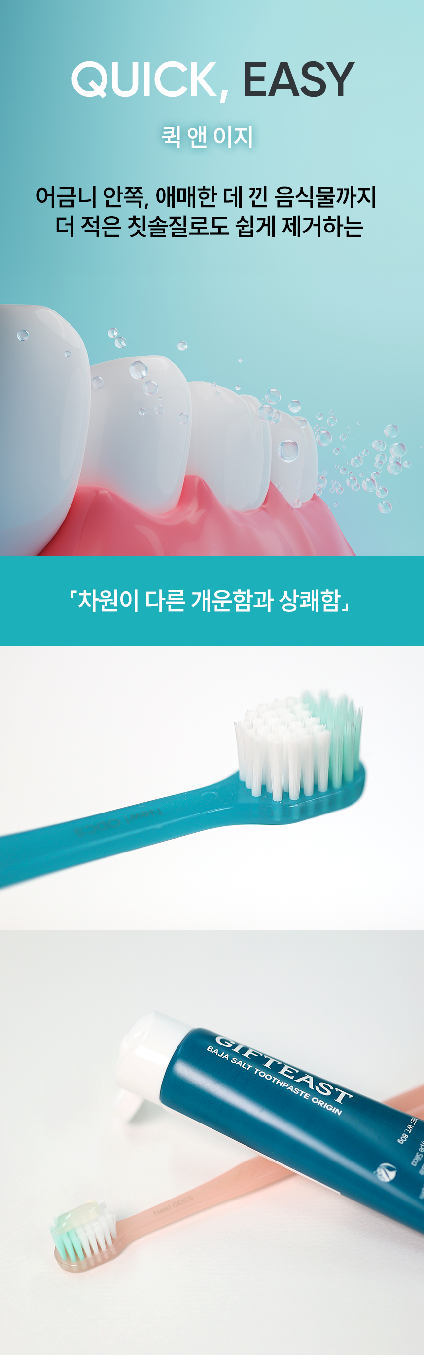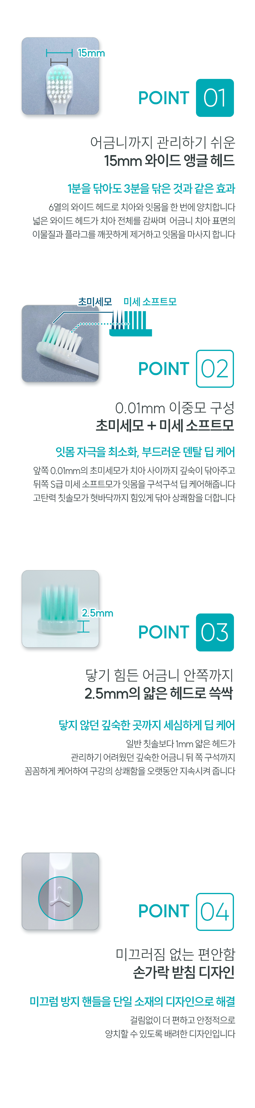 치아와 잇몸, 잘 닿는 어금니 안쪽까지 딥!케어하는 와이드 앵글 + 초미세이중모 칫솔